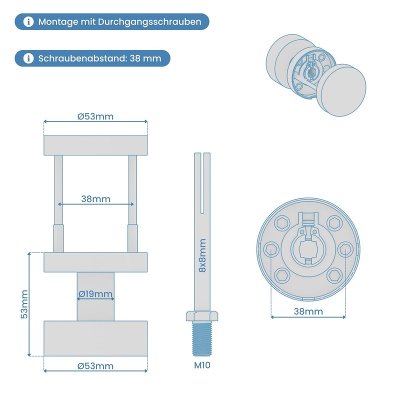 - Fixed door knob: non-rotatable and fixed, ideal for doors that do not want to be opened via the knob