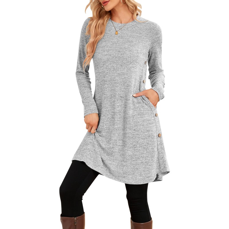 SENBATU Winter Sweater Dress for Women, Long Sleeve, Casual, Side Buttons, Tunic, with Pockets, lightgrey
