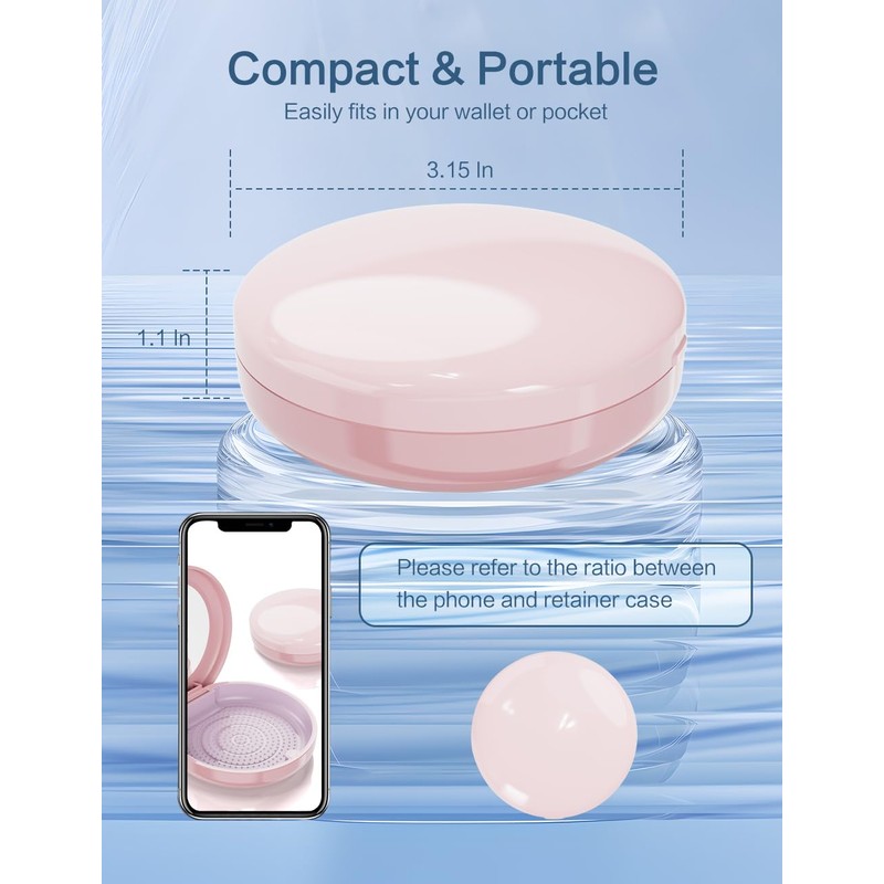 SENCCO Slim Retainer Case, Retainer Holder Case for Pocket, Travel Retainer Cases with Mirror Design, Magnetic Aligner Case Compatible with Invisalign- Pink