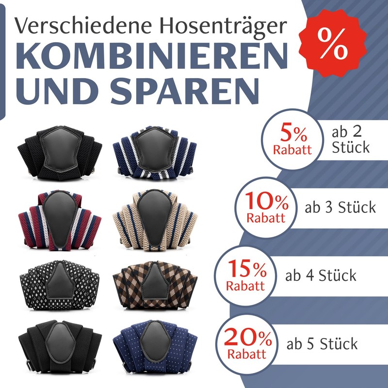 Modern and timeless designs (braces wide, narrow, striped and spotted).