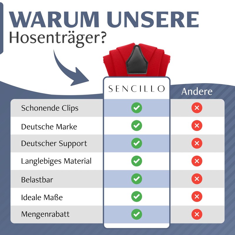 • Unbelievable wearing comfort – the Sencillo braces in colour impress thanks to their high-quality workmanship and fit perfectly to the body.