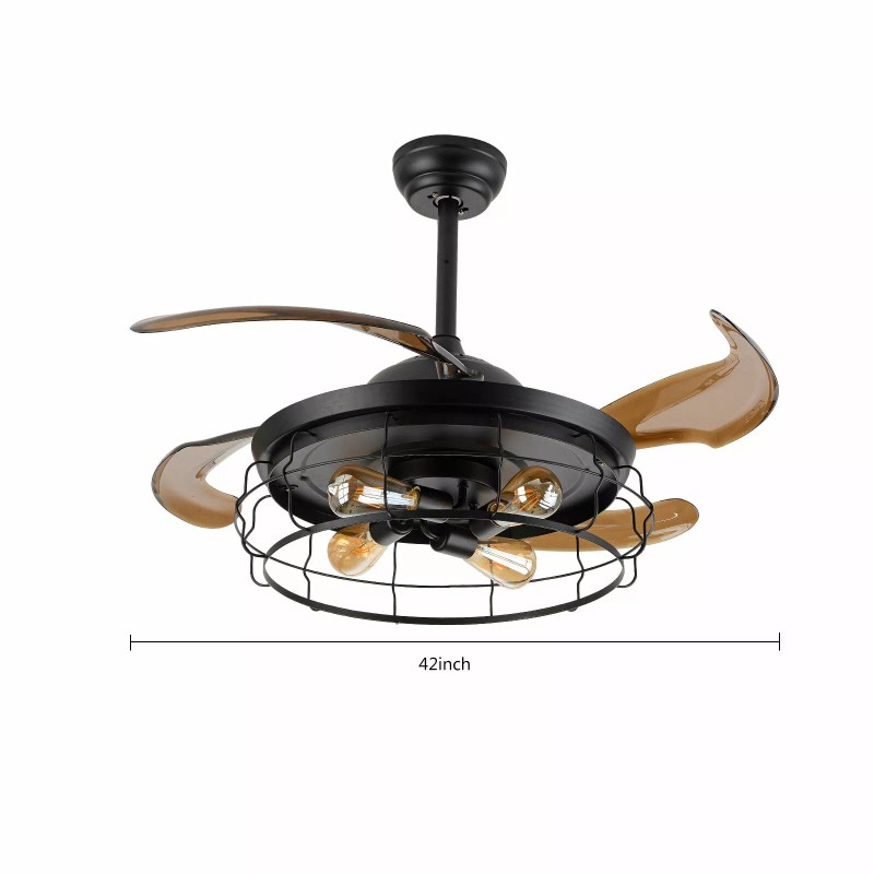 42'' Rustic Ceiling Fan Light Remote Control Chandelier Retractable Blades Lamp