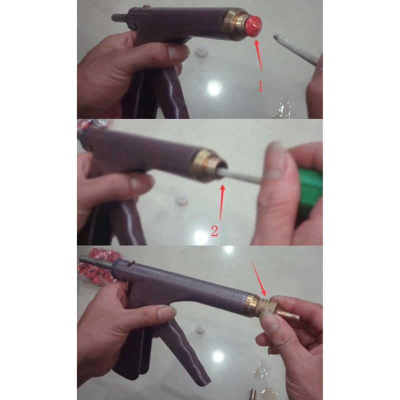 The Gun is a spring loaded device that drives the air pressure into the hole.