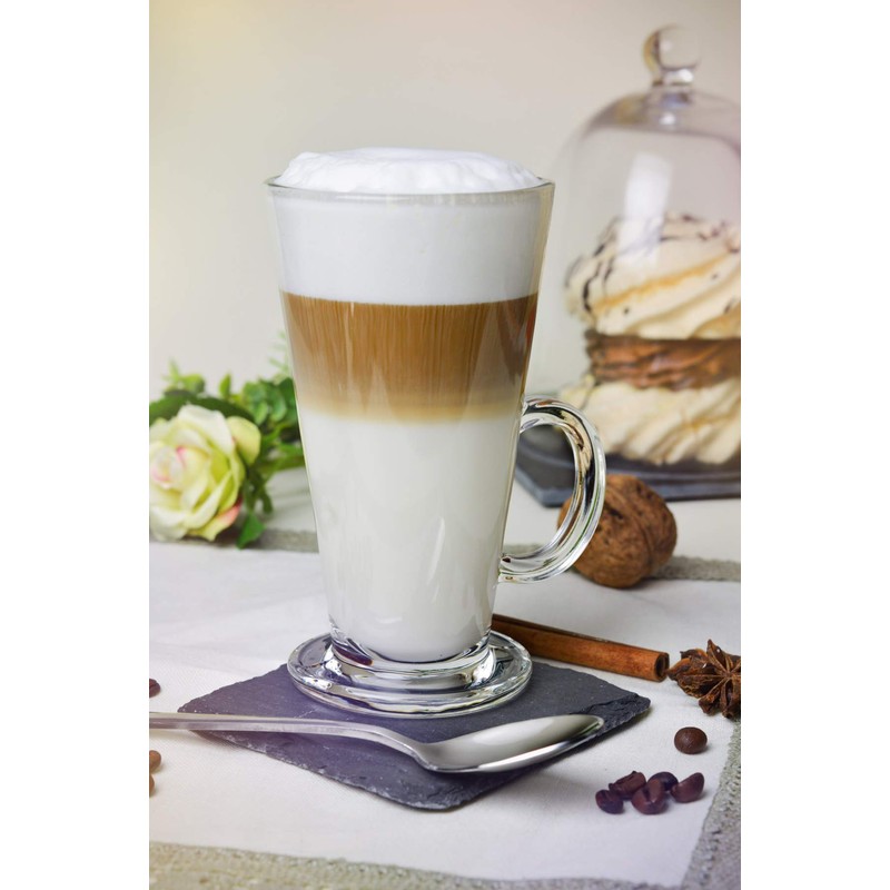 - Elegant and versatile design: this set of 6 glasses on a base with handle is not only aesthetically pleasing, but also extremely versatile. It is perfect for coffee and tea, but also offers space for other drinks such as latte macchiato or cappuccino
