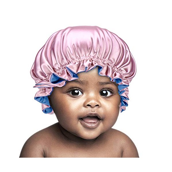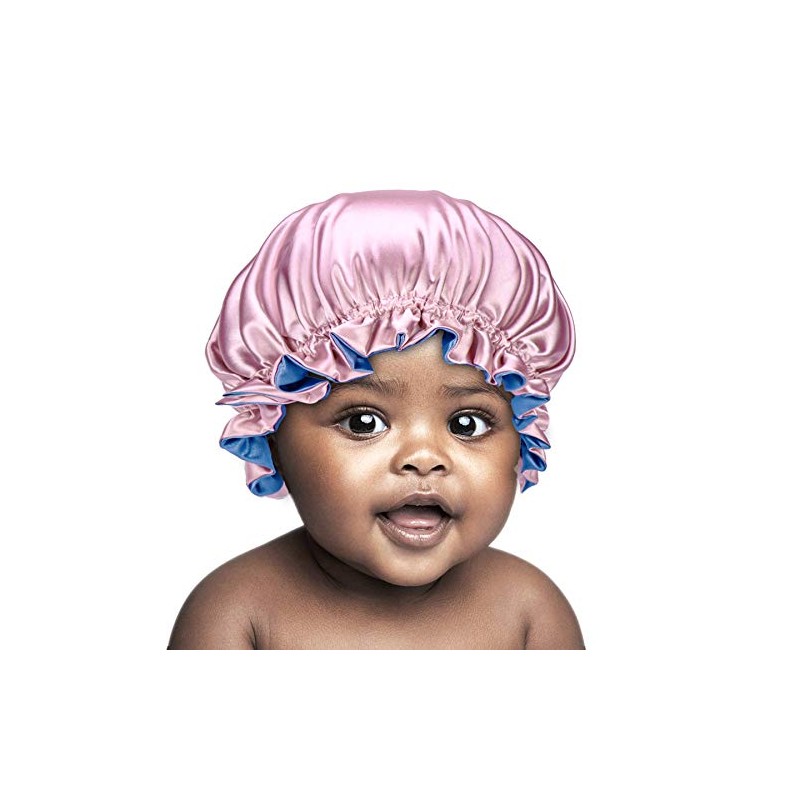 SENG TERM Kids Satin Bonnet Sleeping Cap Adjustable Silky Bonnet Double Layered Reversible Hair Bonnet Silky Night Hat for Toddler Child Baby