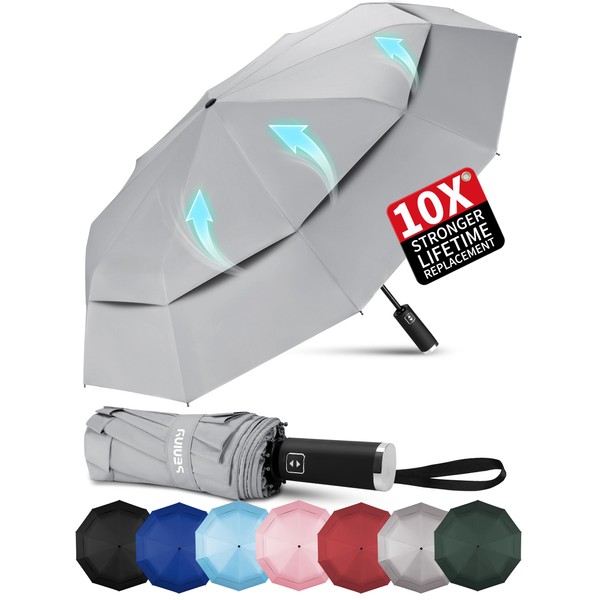Seniny Windproof Travel Umbrella, Double Vented Canopy Large Umbrellas for Ra...
