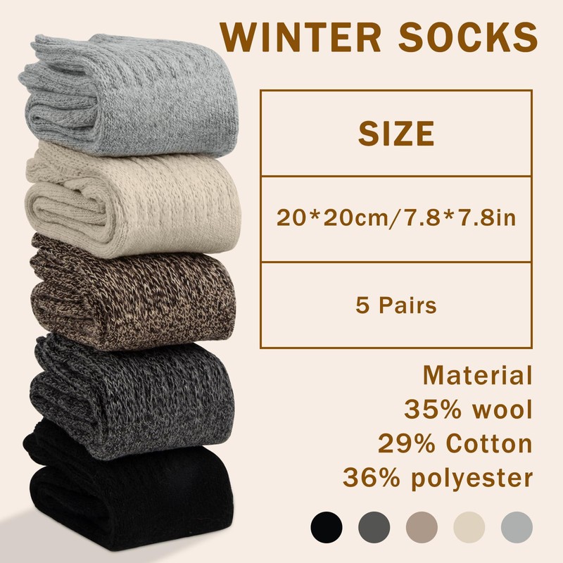 - One Size Fits Most: Wool socks for women men are standard US size, suitable for shoe sizes 5-9; Elastic fleece womens socks can fit the curve of the foot and wrap around the foot without being tight, so most people can enjoy thick socks