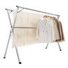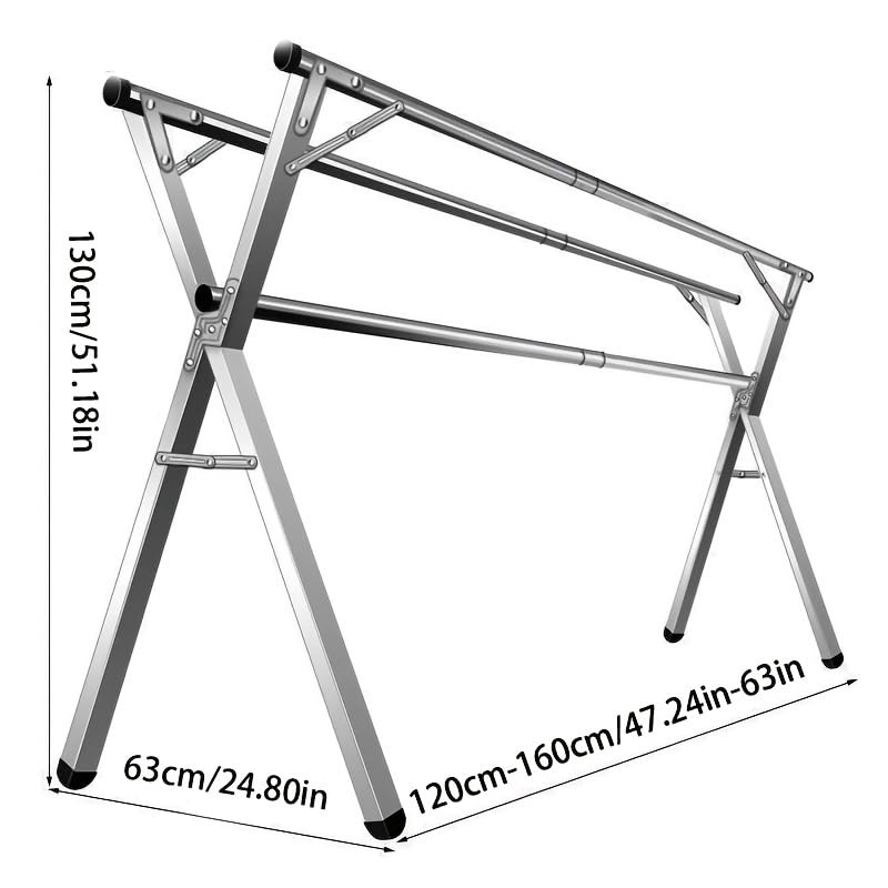 Transform your laundry routine with this versatile triple-bar drying rack that combines functionality and space efficiency. Featuring a retractable design that extends from 47.24 to 63inches, this heavy-duty stainless steel rack adapts to your drying needs. The foldable construction makes it perfect for both compact storage and easy setup, while 20 sturdy hooks provide ample hanging space for various garments. Whether used indoors or outdoors, this robust drying rack serves multiple settings including homes, hotels, and camping environments. The sleek metal finish complements any space while ensuring durability for long-term use. Its thoughtful design maximizes vertical space utilization, making it an ideal solution for small living spaces. When not in use, the rack folds neatly away, maintaining a clutter-free environment. The combination of premium stainless steel construction and practical design elements makes this drying rack a reliable addition to your home organization system.