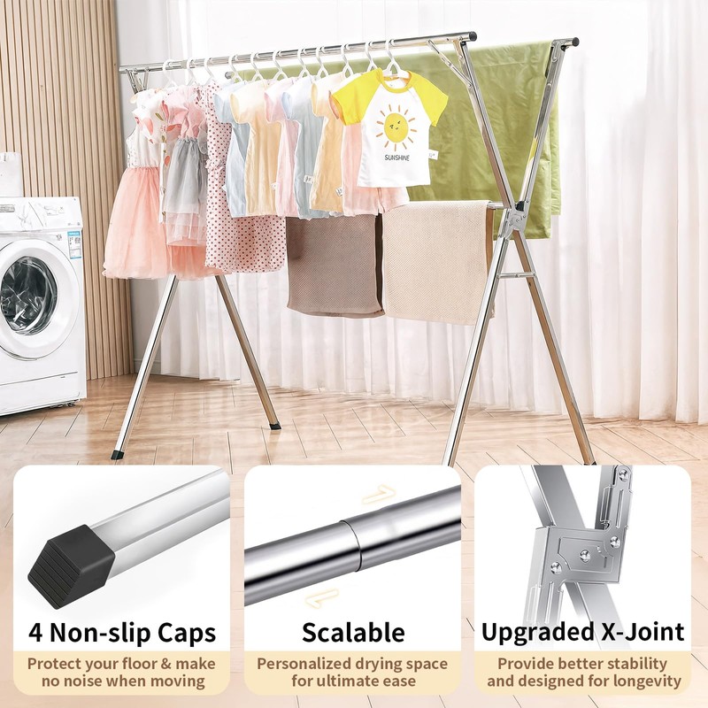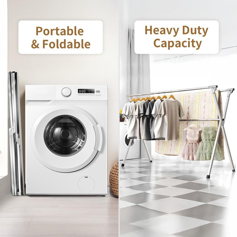- EXPANDABLE DESIGN: Retractable clothes drying rack extends from 47.24 to 63inches, providing flexible drying space to accommodate various load sizes