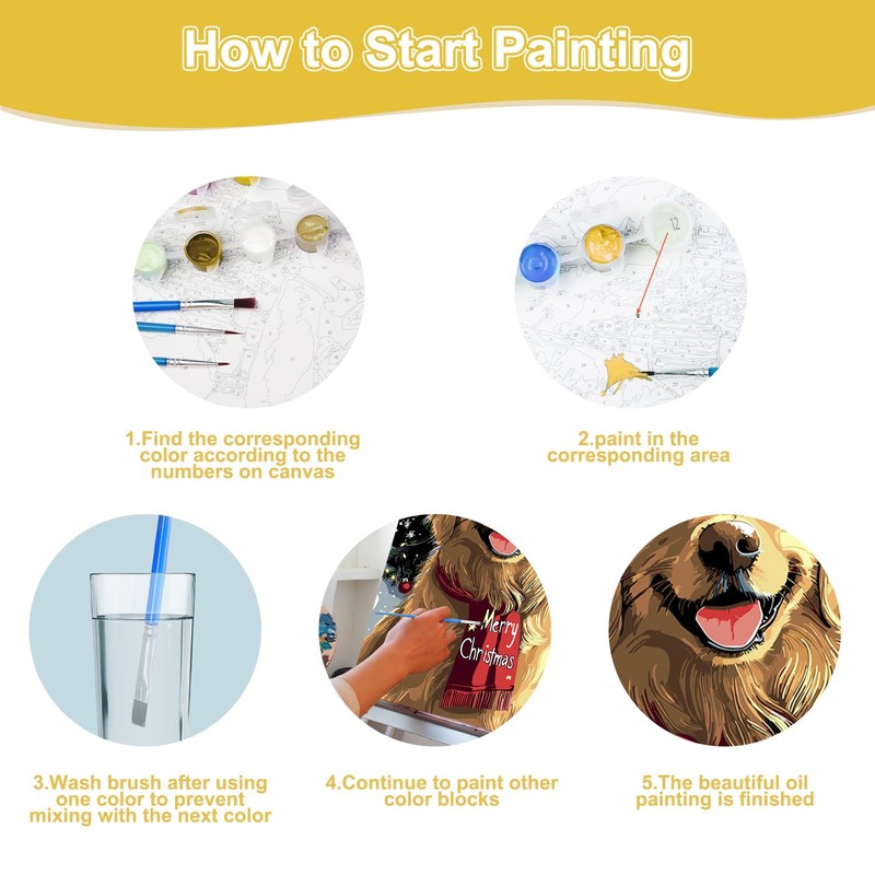 SENQAO Golden Retriever Framed Paint by Numbers Kit for Adults Beginners with Wooden Easel, Christmas Easy Paint by Number Kit with Frame, Watercolor Adult Paint by Number Framed Canvas 7.8x11.8inch