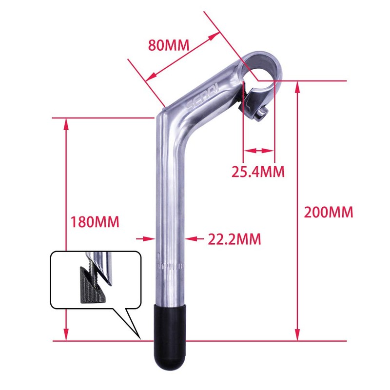 SENQI 22.2 * 25.4mm Electroplating Gooseneck Stem Aluminum Alloy 80 * 220 * 240 Stems With Teeth BSB040(Silver)