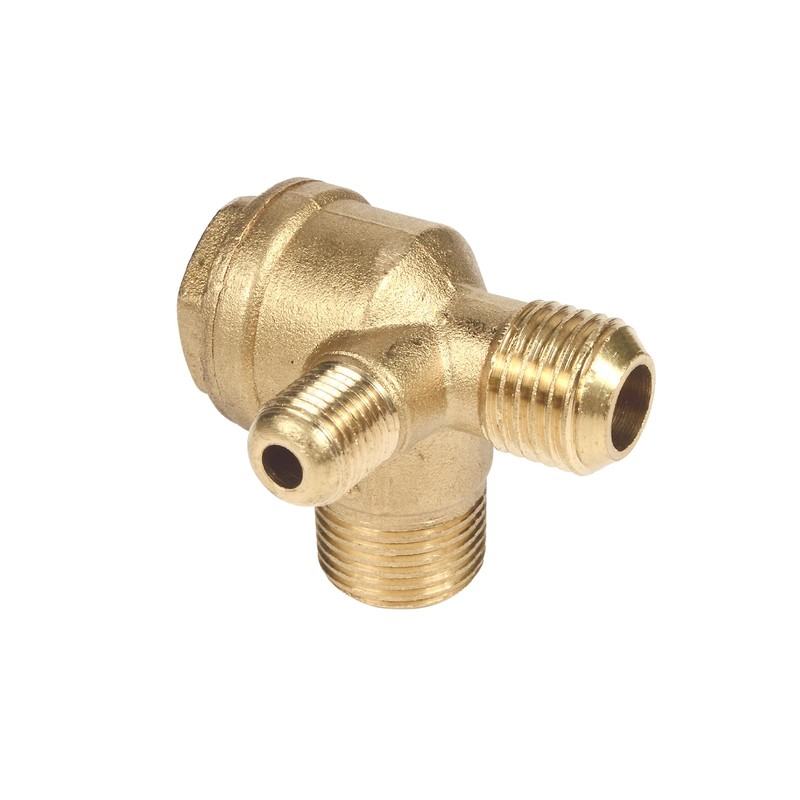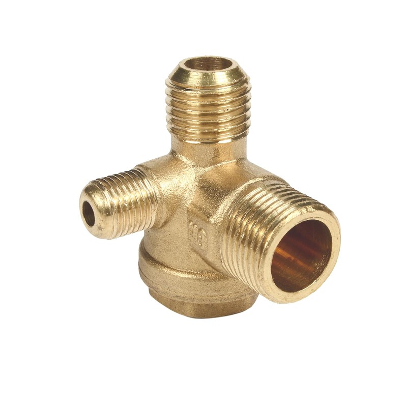 SENRISE Air Compressor Check Valve, Brass, 3-Way Male Threaded, 3/8" * 14mm * 1/8", Replacement, Yellow