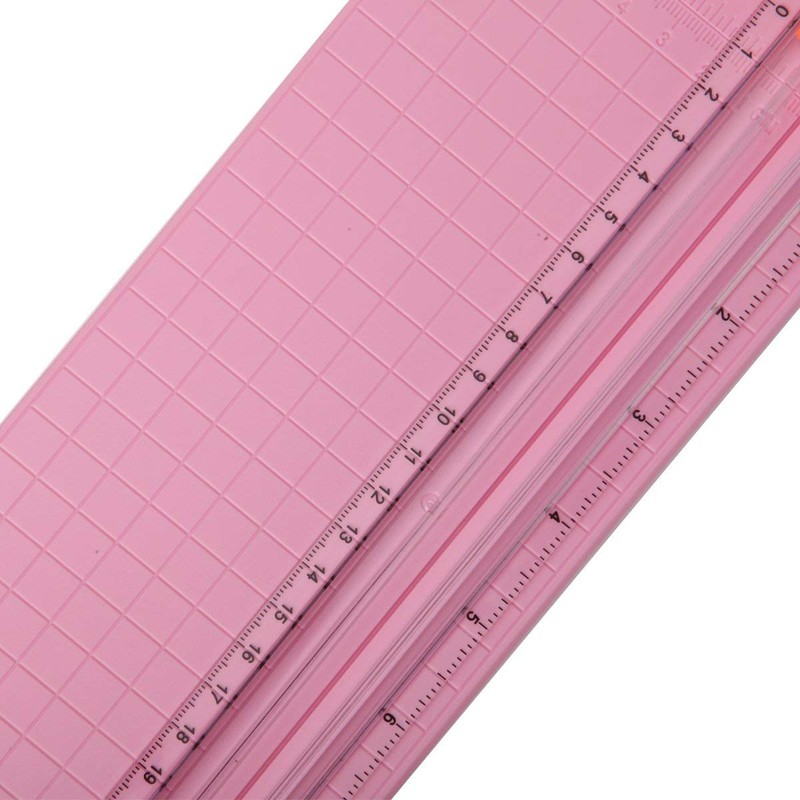 SENRISE Paper Cutter Trimmer, 2PC Mini Paper Cutter A5 Portable Paper Trimmer Scrapbooking Tool with Finger Protection and Slide Ruler/BLUE+PINK