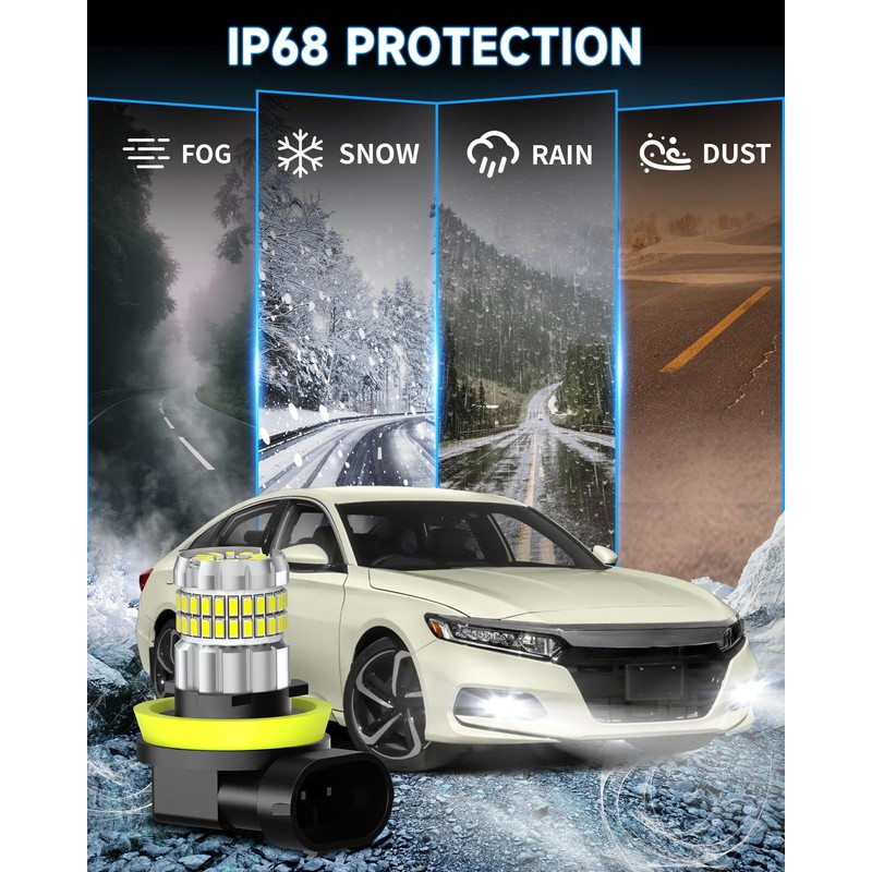- 【360° Illumination】The Honda Accord fog lights are made of 60pcs of the latest upgraded 4014 chips, with a 360 degree luminous design that makes the bulb lighting pattern more perfect. There are no black spots or dark areas, and the width is wider than halogen lamps, making your vision more comfortable