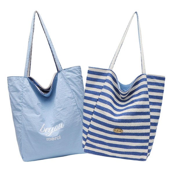 SensaBliss Canvas Tote Bag, A4, Large Capacity, Reversible, Double-sided Design, Durable, Shoulder Bag, Shoulder Bag, Eco Bag, Women's, Stylish, Large, For Commuting to Work or School, Travel, Shopping (Striped & Alphabet Printing), Combines Fashionable and Practical. Made of high density canvas fabric, soft, durable, and wear-resistant for a long time. Lightweight but sturdy construction, this large capacity is reliable even on days with a lot of luggage. Securely holds all your daily necessities such as A4 documents, laptop, wallet, cosmetics, folding umbrella, etc. The best feature is the reversible double sided design. The front is a striped pattern and the back side is an alphabet print so you can change the style according to your mood and occasion. From casual school or shopping, to relaxing commuting to work or travel, this one can be used for a wide variety of occasions. The length of the handle can be used on either a shoulder or a handbag, making it lightweight and easy to hold, and it can be used as a secondary bag or as a main bag. The simple yet impressive design makes it a perfect accent for your outfit. This tote bag is easy to use for a variety of occasions, such as commuting to work or school, traveling, shopping, the gym, picnic, and outdoor activities, and is a great gift for your family and friends. The large size makes it safe for those with a lot of luggage. We hope you will welcome your partner every day. "