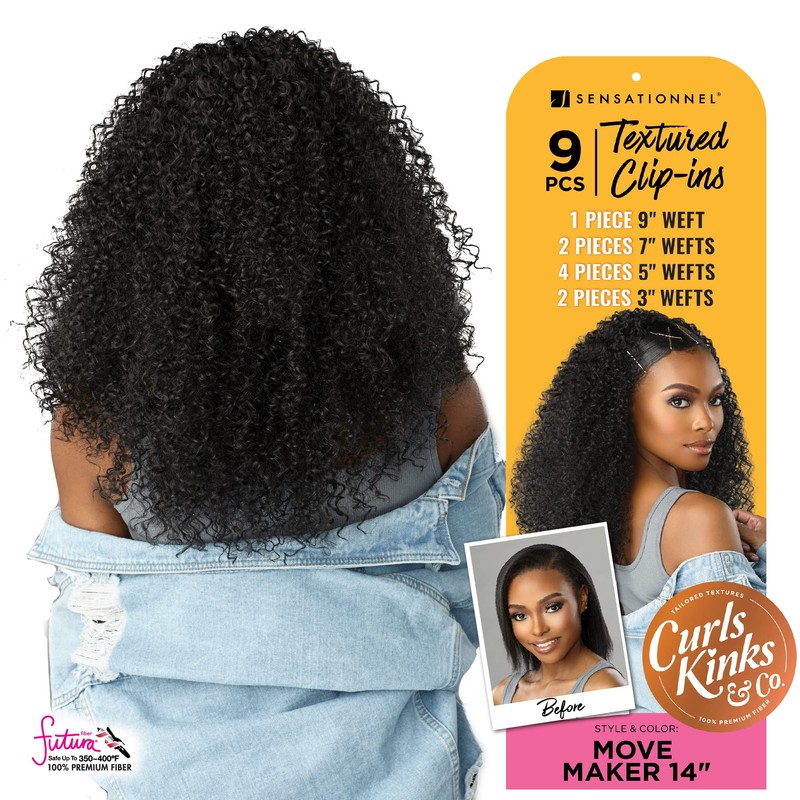 Sensationnel Curls Kinks & Co Textured Clip-In - MOVE MAKER 14″ (Color:1 Jet Black)