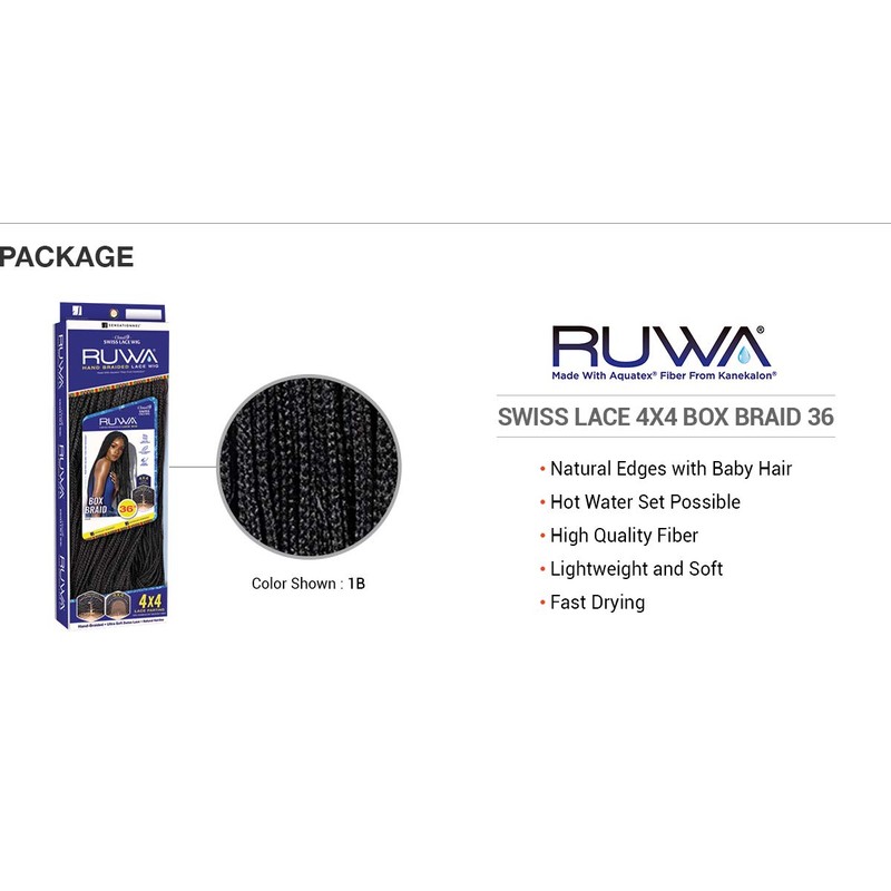 Sensationnel Ruwa 4x4 Braided Wigs – Box Braid 36-inch Cloud 9 synthetic with 4x 4 lace parting with baby hair water repellent fast dry - RUWA Box Braid 36 Inch (2)