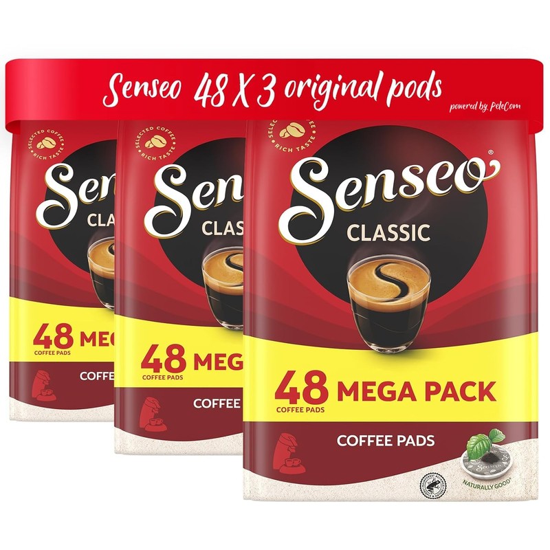 Senseo Classic Medium Roast Coffee Pods – 144 Count (3 Packs) – Smooth, Balanced Flavor with Rich Crema – Single-Serve Pads Compatible with Senseo & PeleCom Machines