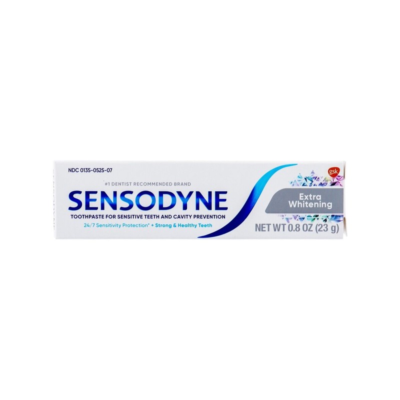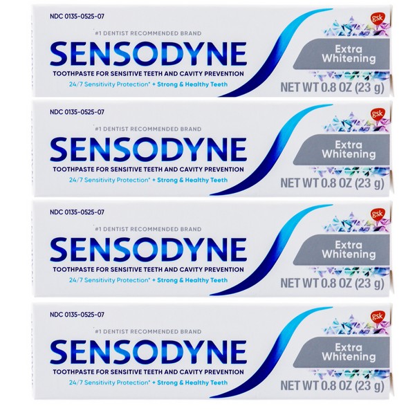 Get a brighter, healthier smile with Sensodyne Extra Whitening Toothpaste. This pack of 4 conveniently sized 0.8oz each tubes is perfect for on-the-go use. Formulated to provide effective relief from tooth sensitivity, it also helps to gently whiten your teeth, removing surface stains for a radiant smile. Keep your teeth clean and fresh with Sensodyne, the dentist-recommended brand for sensitive teeth.