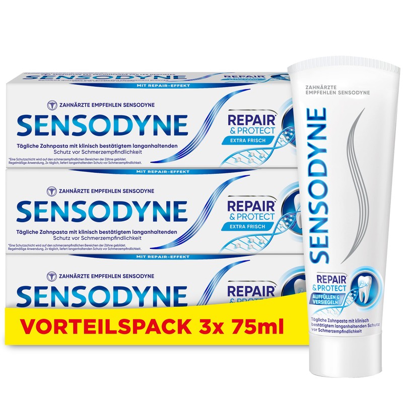 Sensodyne Toothpaste, Repair & Protect Toothpaste for Pain-Sensitive Teeth, 3 x 75 ml