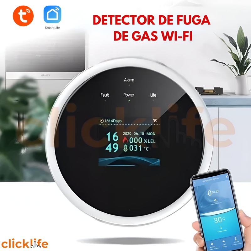 Sensor de Gas LP y Natural | Detecta Fugas y Envía Alertas | Conexión WiFi a Equipos Externos como Válvulas de Gas | Pantalla LCD en Tiempo Real | Compatible con SmartLife y Tuya Smart