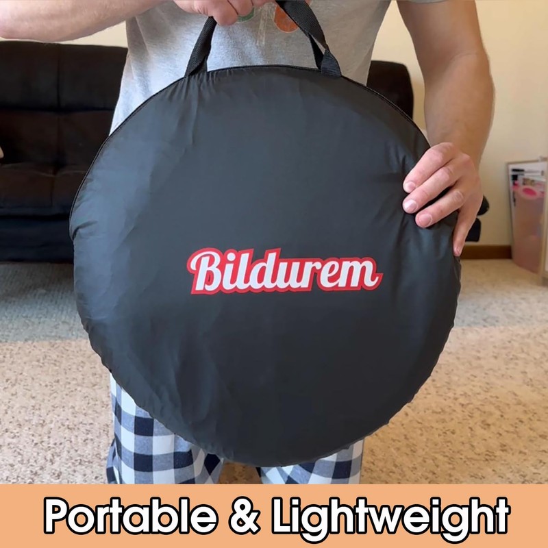 - Easy to Set Up - Only takes 20 seconds to set up the pop-up tent and 2 minutes to fold and store. No poles and pegs, or any assembly needed. It fits in a small portable carry bag, doesn’t take up any space when not in use.