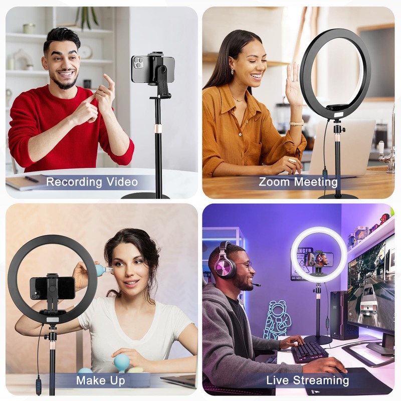 - 360° Rotation&Height Adjustable: Featuring an adjustable head that can rotate 360 degrees and tilt 180 degrees. This ring light helps you find your perfect angle and get satisfactory light with minimal effort if you want to cover all facial imperfections and reduce shadows. Whether for live streaming, makeup, vlogging, or product videos, it's definitely a boon for content creators.