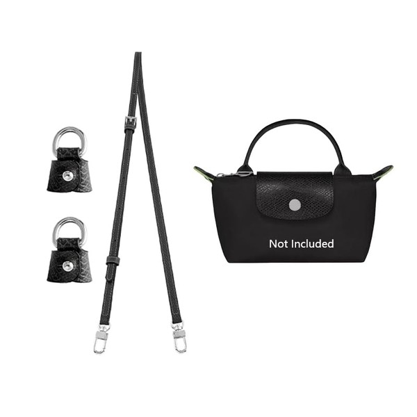 SENTEN Purse Straps Replacement for Longchamp Bag Women, Leather Crossbody Shoulder Strap Kit Adjustable for XS Longchamp Tote Bag Primitive(Black Sliver)