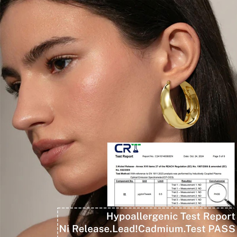 - Hypoallergenic Materials:Crafted from high-quality 14K Gold Plated Hoop Earrings, these chunky gold hoop earrings are 100% hypoallergenic, nickel-free, and lead-free, making gold chunky hoops safe for sensitive skin. The high-polished surface ensures long-lasting color retention, resisting tarnish and fading over time.