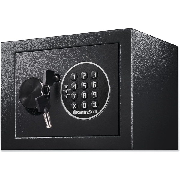 Keep your small valuables safe and secure with the SentrySafe X014E. This extra small home security safe is ideal for storing money, jewelry, medications, passports, and other important items. Designed with solid steel construction, two live-locking bolts, and a programmable digital keypad, it provides reliable protection against theft or unauthorized access.