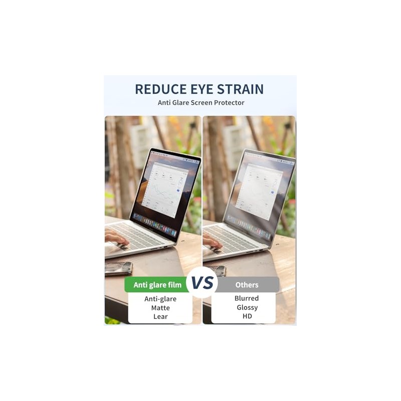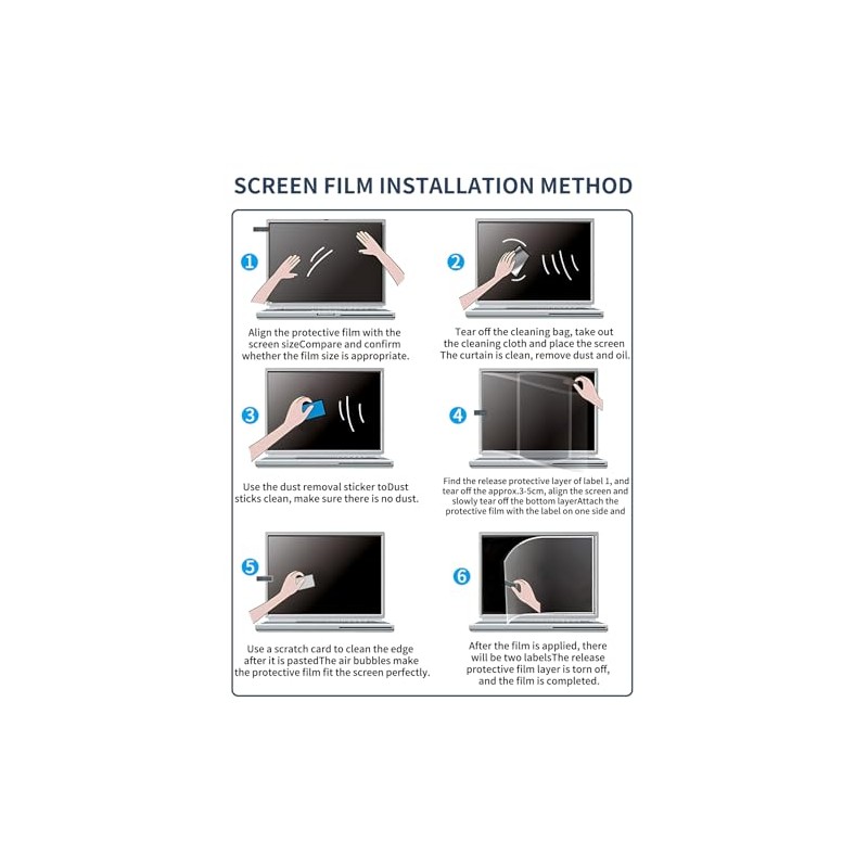 - Fácil instalación: a diferencia de los protectores de pantalla tradicionales con adhesivos fuertes, nuestra capa de absorción de nano-silicona mejorada permite la absorción automática de burbujas y una fácil instalación. Asegúrate de limpiar la pantalla de tu computadora con nuestros accesorios proporcionados antes de la instalación para evitar burbujas