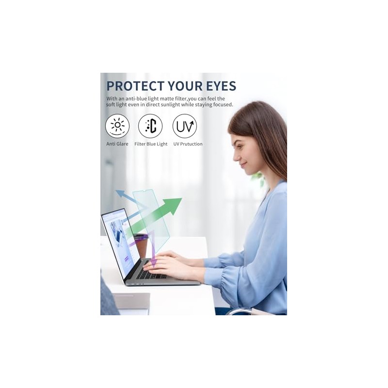 - Diseño resistente a los arañazos: equipado con propiedades avanzadas de resistencia a los arañazos, protector mate de pantalla anti luz azul protege eficazmente tu pantalla de arañazos y daños. La superficie lisa minimiza las huellas dactilares y las manchas, por lo que es fácil de limpiar