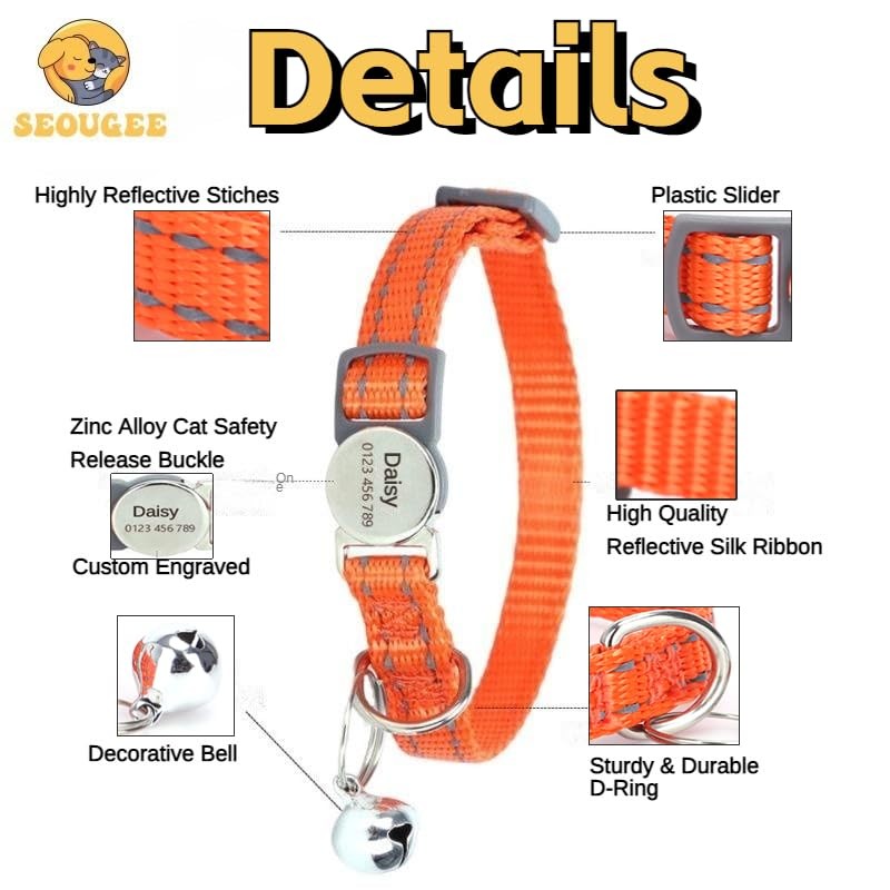 - 【Highly Reflective】🌟 Our nylon personalised cat collar features a reflective strip that shines bright in the dark, allowing you to quickly locate your kitten and ensure their safety during nighttime adventures.