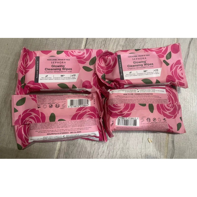 4 SEPHORA Rose Glowing Face Cleansing Wipes 10 Ct each Pack. New Travel Size..