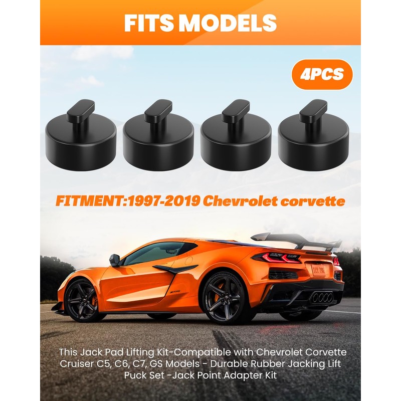 - Precise Protection:Perfect protection for the chassis and battery. Our jacking pucks will help you avoid damaging the chassis of your car when you lift it. Rubber lift pads are also less likely to damage your car than metal ones. With Corvette jack pad kit, you can easily jack up your car at home