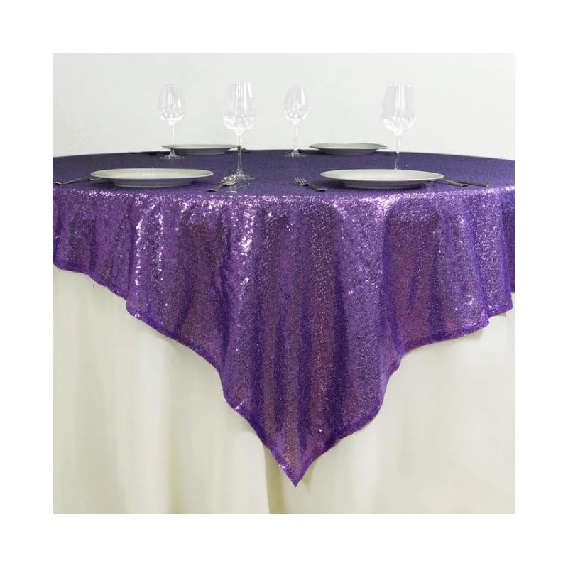 Sequin Overlay Purple 72" X 72" Square Tablecloth for Party Dessert Table Exhibition Events