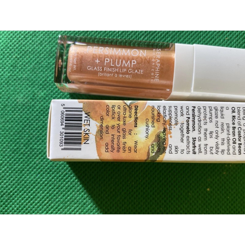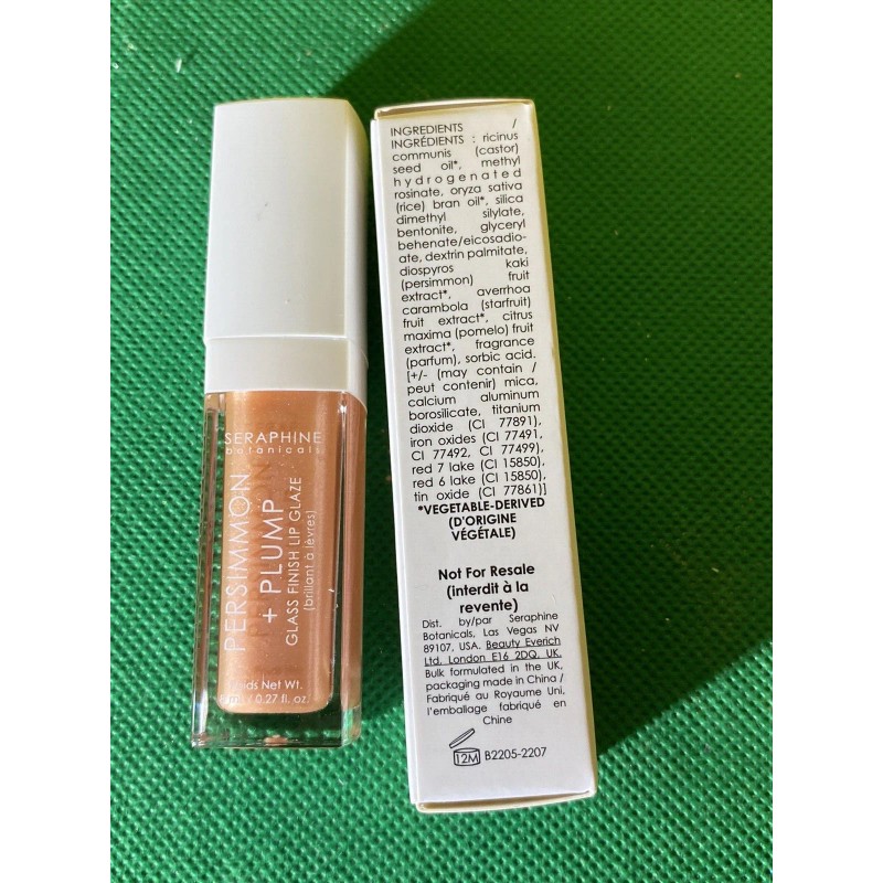 SERAPHINE  BOTANICAL PERSIMMON+PLUMP GLASS FINISH LIP GLAZE WET SKIN 0.27 OZ NIB