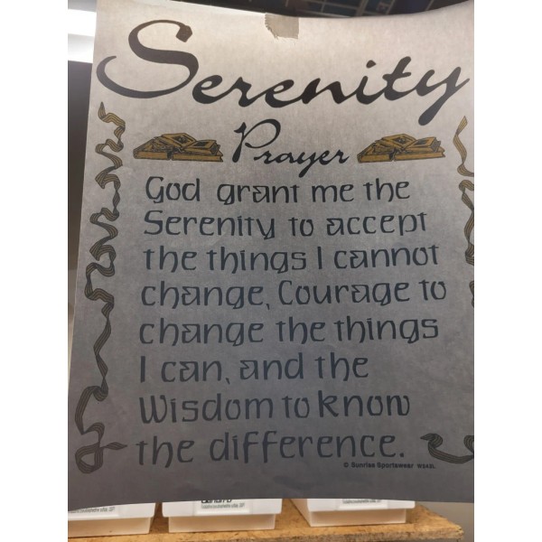 HUGE "SERINITY PRAYER FOR TEES 12X14. LARGE TRANSFER OF SERINITY PRAYER. ,GREAT FOR TEES,SWEATSHIRTS,RECOMMENDED FOR USE WITH A HEAT PRESS
