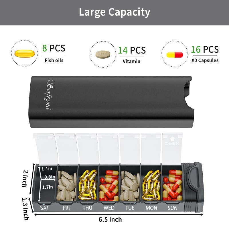 Serfeymi Metal Weekly Pill Organizer, Serfeymi Aluminum Daily Pill Box,7 Day Pill Case...