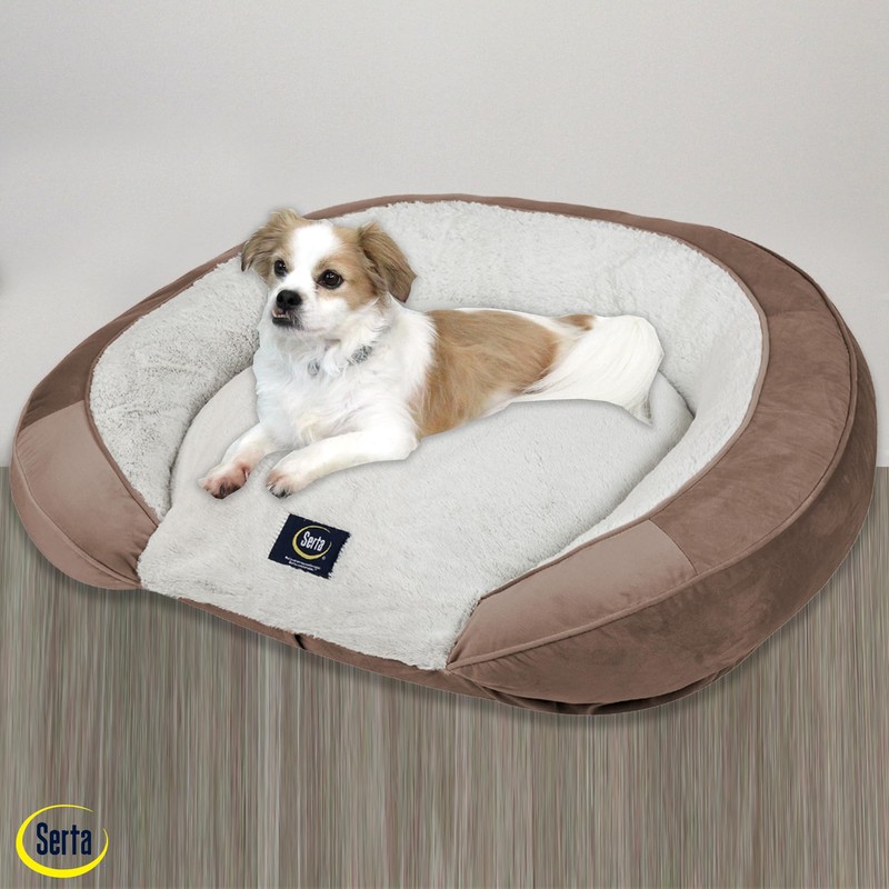 Serta Oval Couch Dog Beds - Quilted Orthopedic Memory Foam Base with Supportive Rounded Bolsters - Taupe (Large)