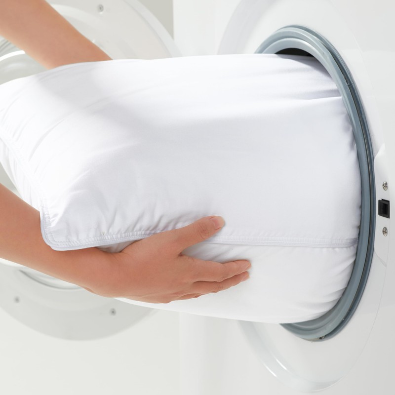 - WORRY FREE CARE - Our bed pillows are machine washable. Why? Because life happens! Machine wash pillows separately in a cold, gentle cycle. Tumble dry on low. Use large front loading washer and dryer. Please allow 24 - 48 hours after unpacking for pillows to expand and reach full fluffiness