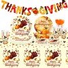 Sertokm 170PCS Fall Thanksgiving Party Plates and Napkins Set – Disposable Tableware with Banner, Pumpkin Tablecloth, Cups and Utensils for Friendsgiving or Autumn Harvest, Serves 24