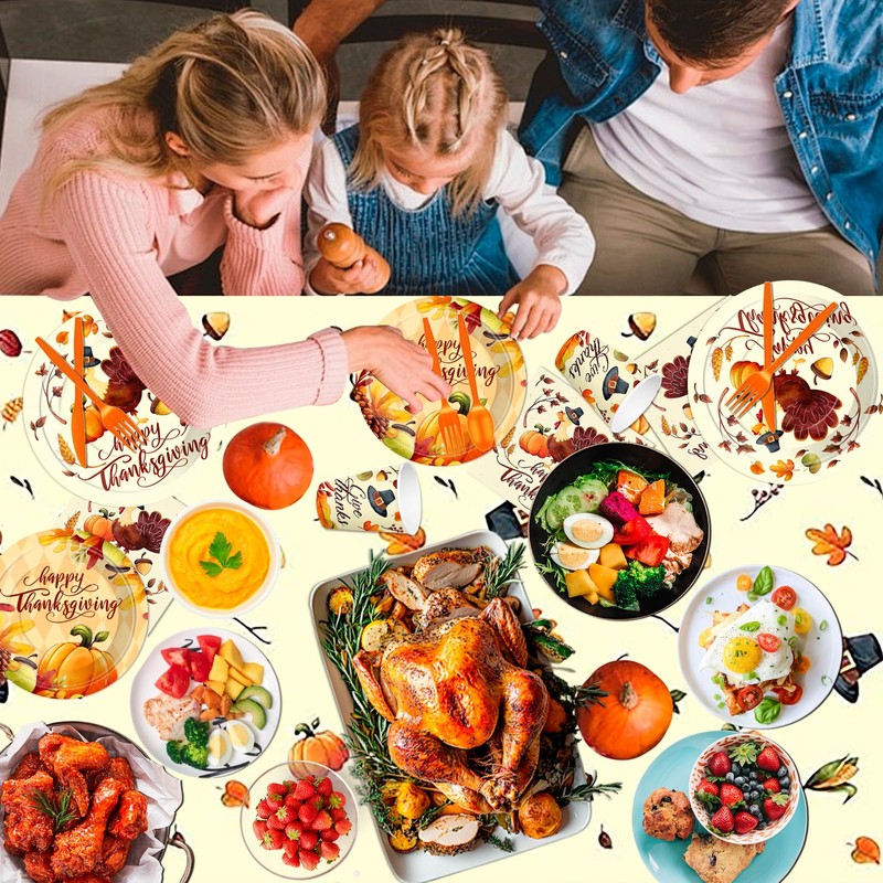 - ll-in-One Thanksgiving Party Set – 170PCS for 24 Guests:Make hosting easy with our complete thanksgiving party set—170 pieces of thanksgiving party supplies for 24 guests, including thanksgiving plates, cups, cutlery, and thanksgiving plates and napkins. Also includes a tablecloth and banner for easy thanksgiving party decorations. It’s your all-in-one solution for festive fall party supplies and gatherings.