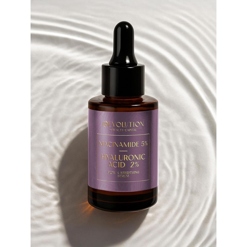 Serum de Niacinamida 5% + Ácido Hialurónico 2% + Acacia Senegal | Efecto Lifting Facial | | Reduce Imperfecciones y Manchas | Reduce Poros Visibles | Regula Producción de Sebo | Hidrata Profundamente | Glow & Smoothing Serum | 30 ml