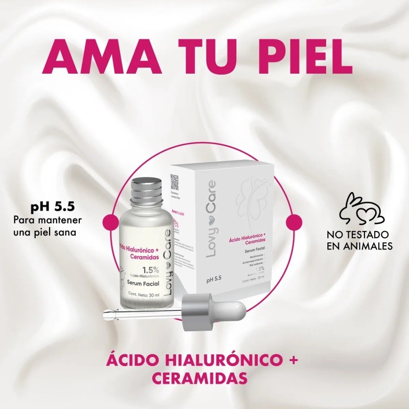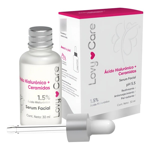 El serum Lovy Care contiene Ácido hialurónico, el cual actúa hidratando la piel dando un aspecto más saludable, pero además de la hidratación, mejora la estructura de la piel y de sus células.