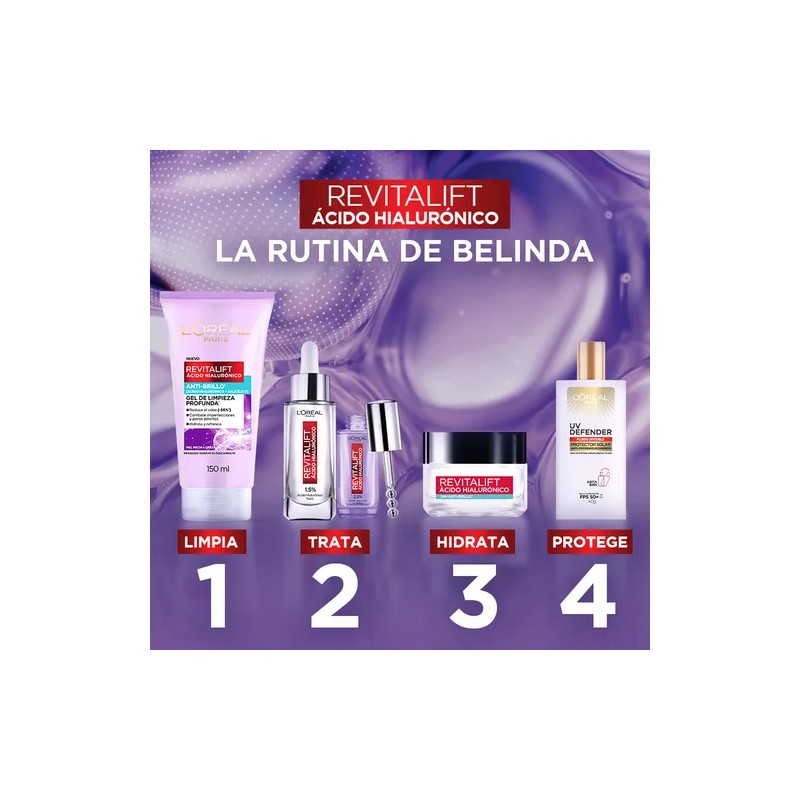 Sérum Rostro Revitalift Ácido Hialurónico de L'Oréal Paris: Un Básico en tu Rutina de Skin Care, hidrata intensamente y rellena líneas de expresión.