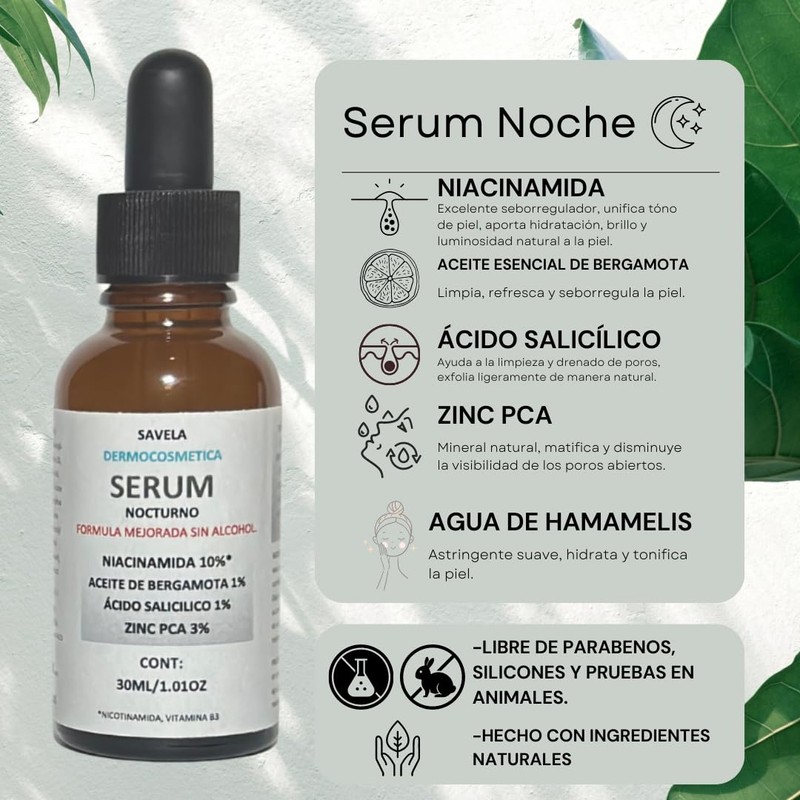 SERUM,SUERO, NIACINAMIDA 10%, ACEITE de BERGAMOTA 1%, A CIDO SALICILICO 1%, ZINC PCA 3%, LIMPIADOR FACIAL, HIDRATANTE, LUMINOSIDAD y UNIFICACION de TONO de PIEL, SEBORREGULADOR, CUTIS GRASO o MIXTO