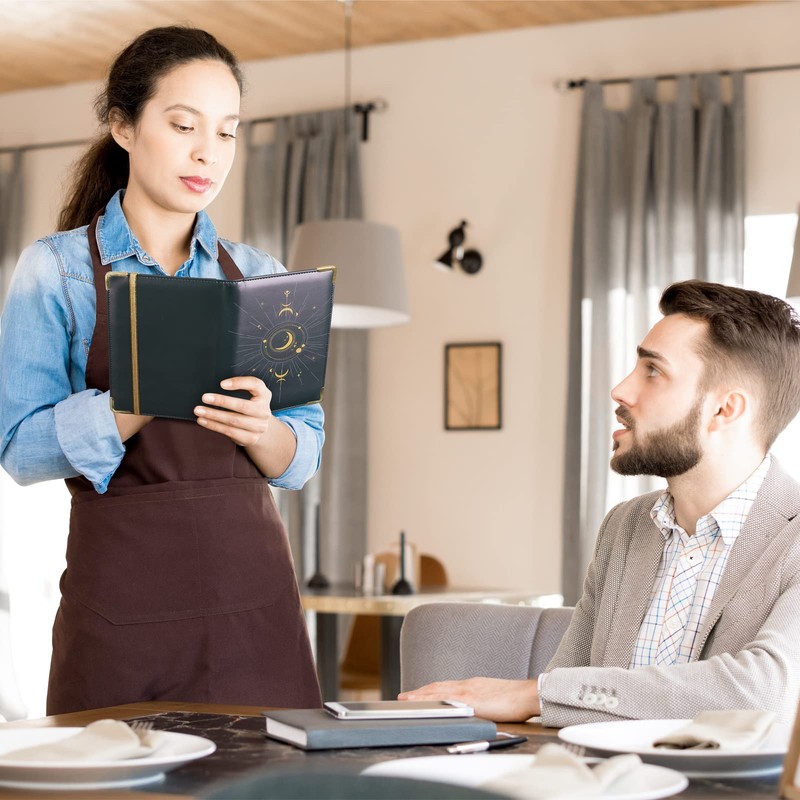- Material--Our waitress book is made of dirt-resistant and waterproof PU leather. You can wipe the serving book with a damp cloth. And the 4 corners are made of wear-resistant metal corners, which look more textured and last longer.