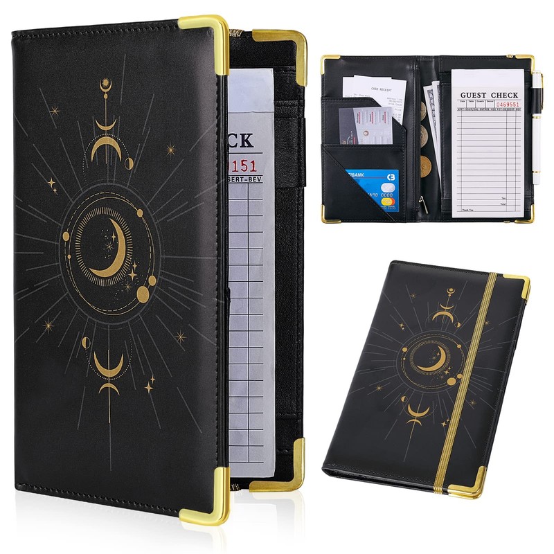 - Functionality&Details--This server book is designed with payment differences in mind with 7 detail parts, credit card payment card slot, coupon menu pocket, bill pocket, coin zip pocket, cash pocket, guest checkbook and pen holder.