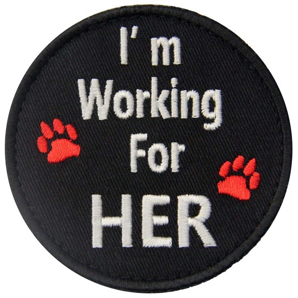 Service Dog I'm Working for Her Vests/Harnesses Emblem Embroidered Fastener Hook & Loop Patch